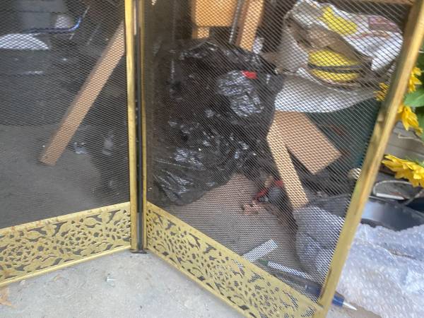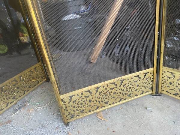 🔥 Vintage Brass 4‑Panel Floral Fireplace Screen – Spark Guard, 32.5" Tall