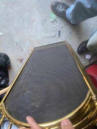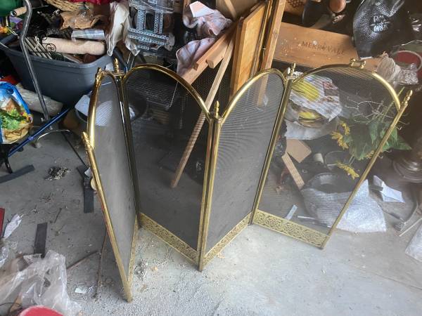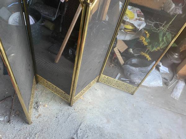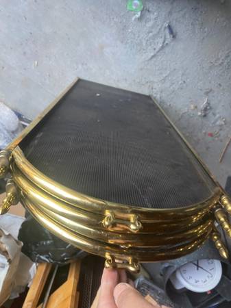 Add timeless elegance to your hearth with this vintage brass fireplace screen, crafted in the 1980s with ornate floral detailing and a classic four‑panel folding design. Measuring approximately 32.5" tall and 51" wide, this spark guard combines functionality with Hollywood Regency style, making it both a protective barrier and a decorative statement piece.
