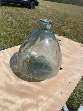 Add timeless elegance and rustic charm to your space with this vintage hand-blown glass demijohn bottle. Standing at an impressive 22 inches tall and holding up to 31 liters, this Italian-made vessel is a stunning decorative piece with authentic character.