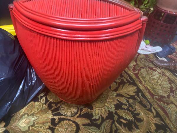 ๐ Vintage Mid-20th Century Coastal Washed Pencil Reed Lidded Basket ๐