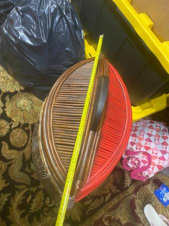 Condition: Good vintage condition; original and unaltered with minor scuffs, blemishes, and small areas of damage shown in photos. One side has been painted red.
