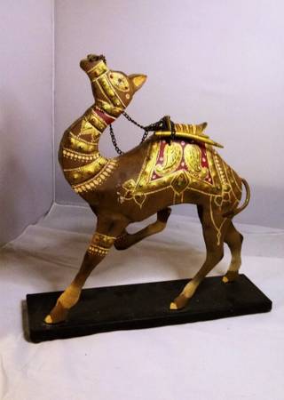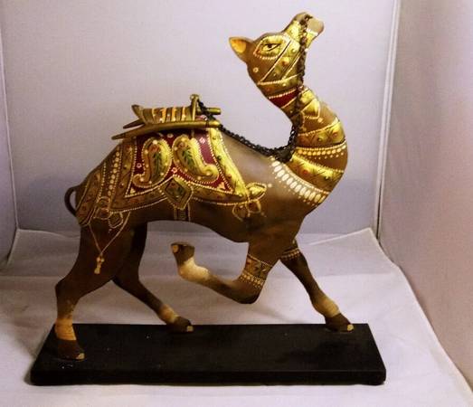 πͺ Vintage Pier 1 Hand-Painted Metal Camel Statue β 16" Tall β Made in India π