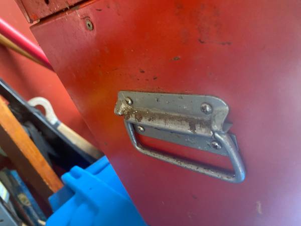 This box is all original and built to last. While the drawers donโt open and close as smoothly as a brand-new unit, they likely just need a little TLCโsome lubrication and light cleaning should do the trick. The chrome handles and slides have some surface rust, but nothing a bit of elbow grease and steel wool canโt fix.