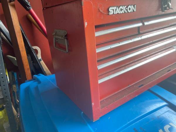 For sale is a vintage Stack-On metal tool box with 6 drawers, finished in a bold red paint. This large, handheld carry-on case is a durable and portable storage solutionโperfect for organizing tools in your garage, workshop, or even as a unique display piece.
