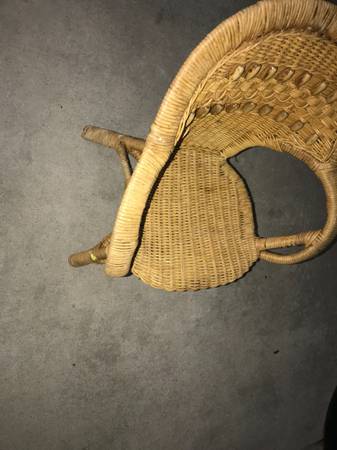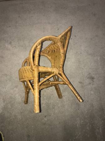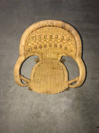 🧺 Vintage White Wicker Child’s Chair – Handmade Rattan | 21” Tall