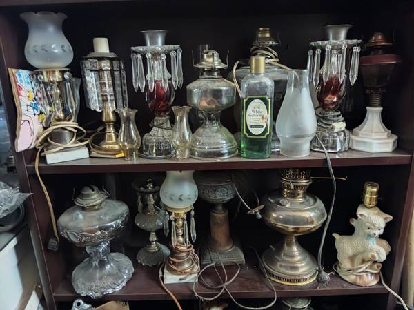 Statues of chicken roosters I do have quite a few chickens in my collection and they got to go from a dollar to $15 most or less Full house of 20 shelves cases of all types, 100s of type of things...