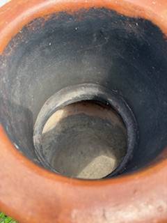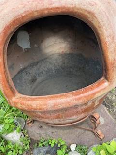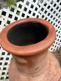 Height is 42 inches, diameter of the top from outside to outside is 13 inches, approximate diameter of the large middle section is 26 inches. Has a metal stand.