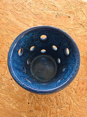 Ceramic Circular Round Orchid Planter Blue Glazed Votive Candle Holder