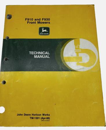 John Deere F910 F930 Front Mower Service Technical Manual $25 obo pickup only