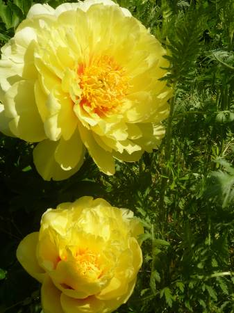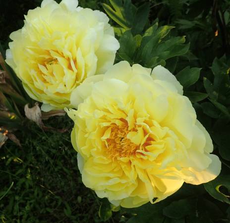 A mature plant of ‘Bartzella’ is incredibly elegant looking, with flowers neatly spaced on the top and sides of the clump. Established clumps can produce 80 or more flowers apiece! The semi-double to double, pastel yellow flowers have a small rose purple flare in the center and a pronounced sweet fragrance. They measure 6-8 inches across on average.