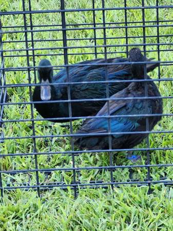 Black East Indie Bantam ducks, 2025 young pair. These are out of our exhibition lines but are being sold as PET QUALITY, $60 for the pair. NPIP certified flock.