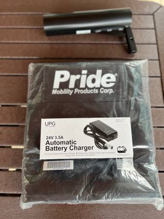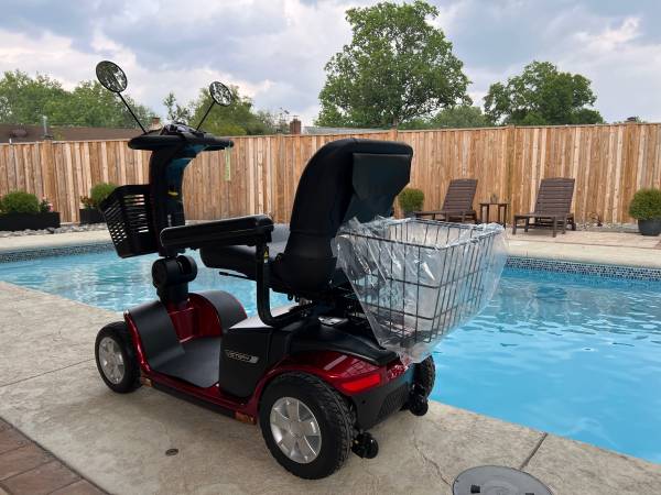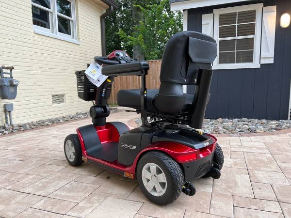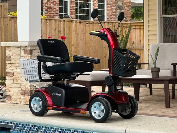 I am selling a brand new Victory 10 Pride 4-wheeled electric scooter. It has a basket in the front and includes a cane holder that attaches to the rear hitch. It also includes a larger basket for the rear that also attaches via the hitch. Includes one rear view mirror (regardless of pictures showing two mirrors) and a new-in-the-box electric charger. The scooter is candy-apple red. Great looking scooter to get you around in style.