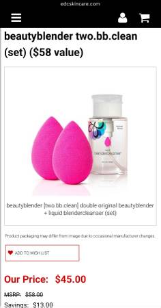 I bought this kit for $45 + Tax. Am using 1 of the beauty blenders which has shown no signs of wear after months of use. The cleanser bottle (for Beauty Blender and any other makeup brushes l) is new / never opened. Selling for $25