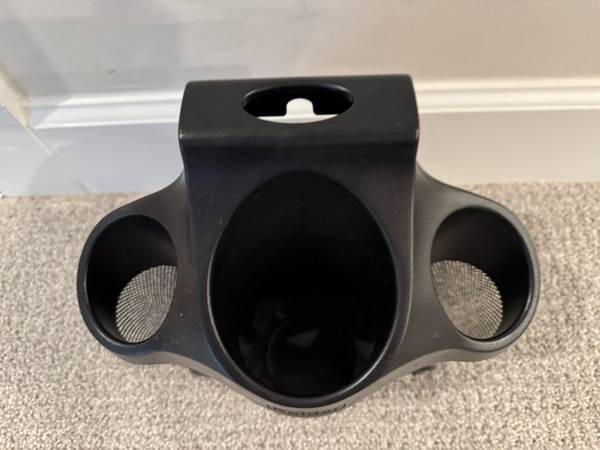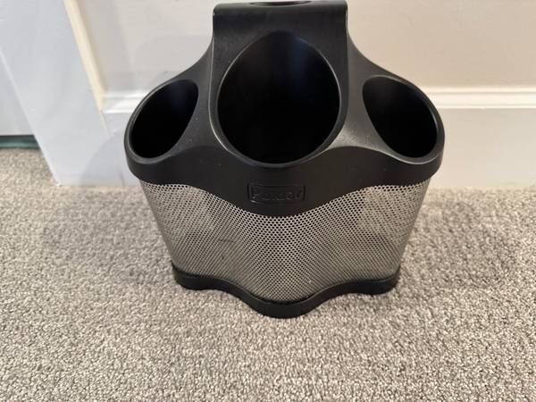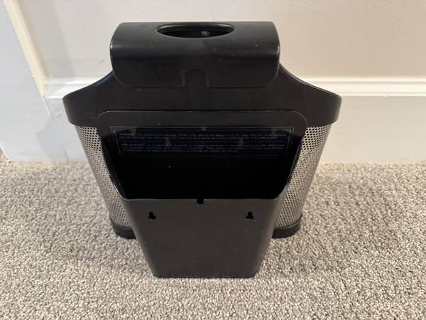 -Features: Rugged stainless steel and plastic, stainless steel mesh for air flow and high heat silicon inner base pad, rear bin has three split compartments to individually store cords, works as free-standing storage on the counter and also hangs on towel bars or hook.