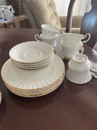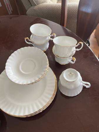 Royal Albert Val D'or Bone China from England 6plate/6 Saucer/5 Tea Cups Gold plated edges. This is the real deal $245 for the lot (all of it), Now $195, now $145 now $125 Call Bill tnx