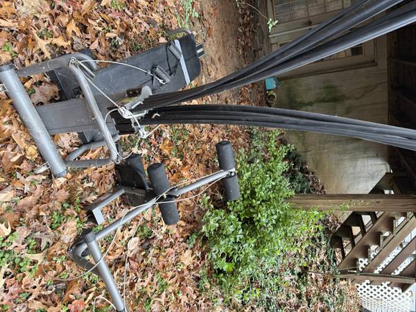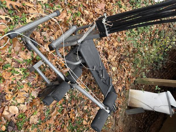 Bowflex Power Pro with bench and leg attachment - fully functional, all equipment included is shown in photos. Some rust on functional hinges as shown in picture, but otherwise looks good. $130 cash...