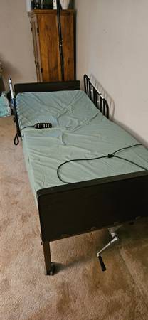 - a hospital bed electric adjust head and feet, manual raise/lower w/mattress