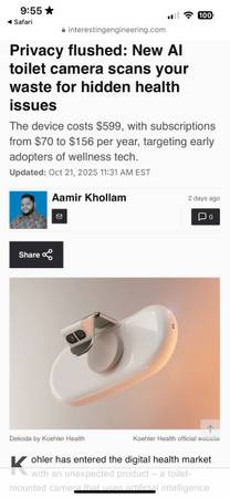 New Al toilet camera scans your waste for hidden health issues. By Kohler Health New & not used.
