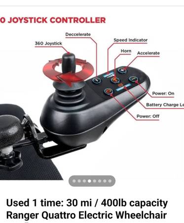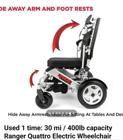 Used Once Ranger quattro lithium battery powered wheelchair 400lb capacity paid 3000