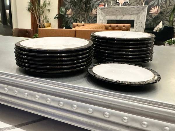 Incredible price and offering for this set of the “Jet” Denby-Langley dinnerware pieces.