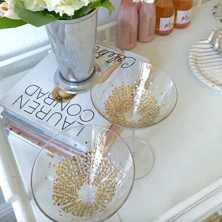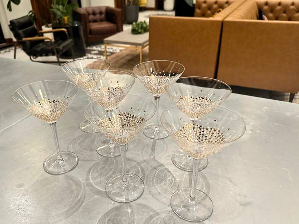 Well-placed gold and silver metallics evoke the effervescence of sparkling wine and cocktails in this contemporary set that Nola.com listed as one of their highly suggested set of glasses to purchase, in addition to many photographers using these cocktail glasses in home settings for sending the message of “Love lives here. Life is good. A beautiful place to be."