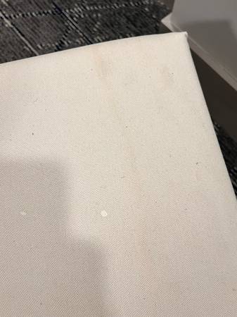 Height and width shown in photos. Cream fabric seat cover. Very faint stains at front. Good condition. Can be used at a desk or dining table. Venmo, PayPal, or Zelle preferred over cash. Cash only...