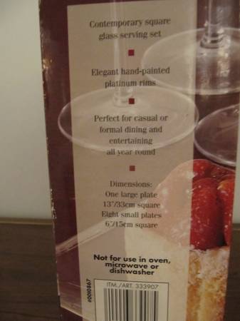Serving w/9 Plates. Square with Platinum Rim. Large plate 13" - Small plates 9". Great for a luncheon or other entertaining.