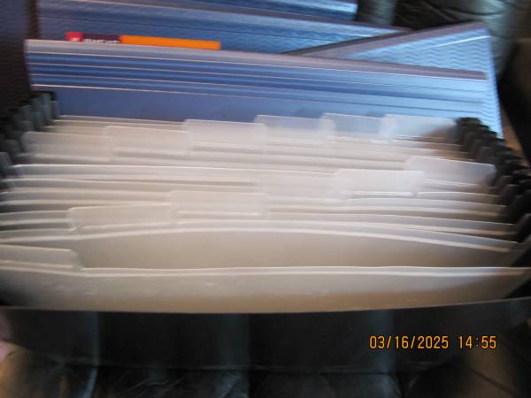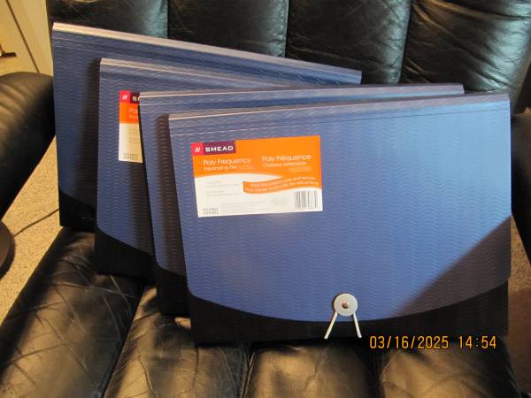 Expanding, 12 pocket, waterproof files with tabs $8.00 each or all 4 for $25.00. $10.50 each at Walmart and Office Supply.