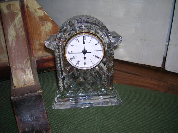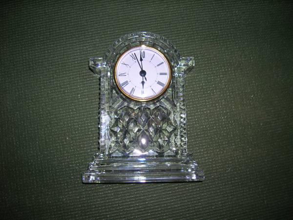 No iPhone or texting here. eMails Waterford Ireland Crystal Mantle Desk Clock Very heavy piece here, not one of the mini clocks Stands 7 1/4" tall Base is 5 1/2" wide x 1 5/8" deep Face/dial alone...
