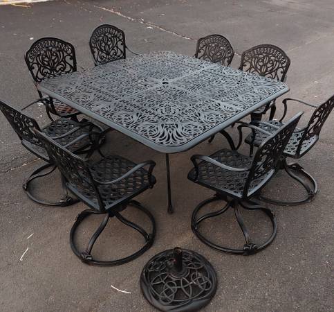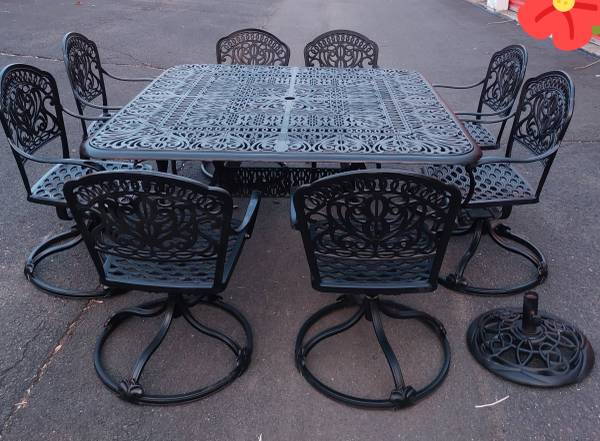 Hanamint Tuscany Luxury Patio Square Table 60"×60" w/ 8 Chairs. CAST...