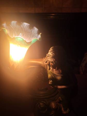 19" x 11"Art Nouveau Tiffany-Style Lily Shade Vanity Mirror Table Lamp - $135 (Fairfax)