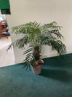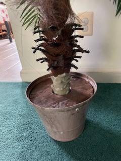 35 inches tall, 36 inches across, the pot is 8.5 inches high and the base is 7 inches in diameter