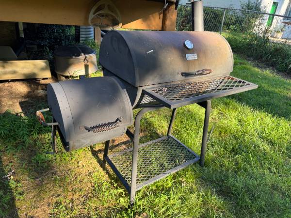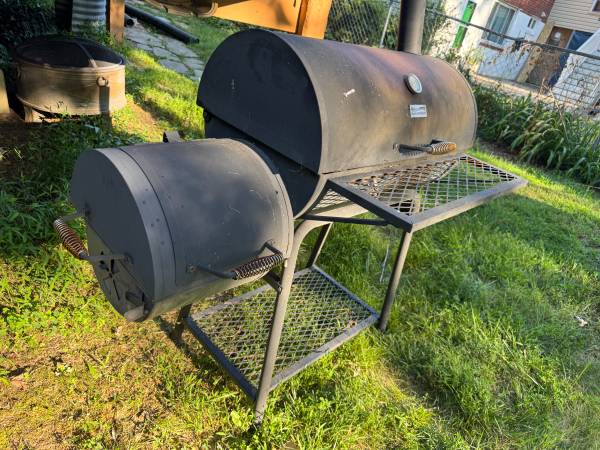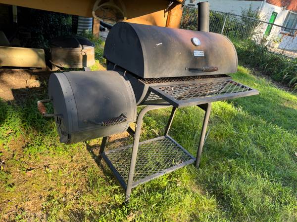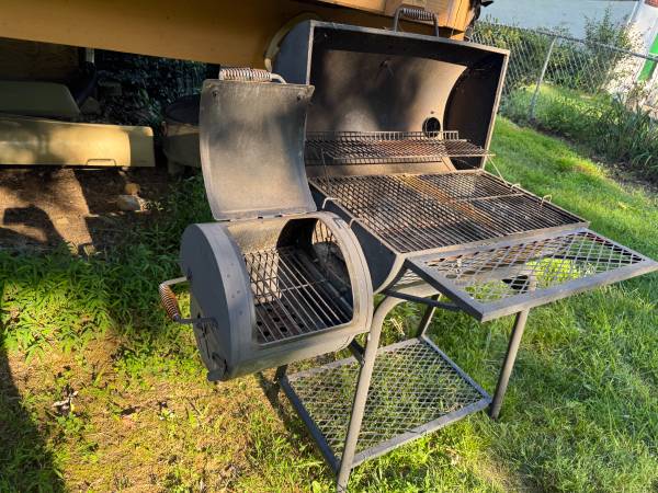 Charcoal Barrel Grill with Offset Smoker. Rusty but in good shape.