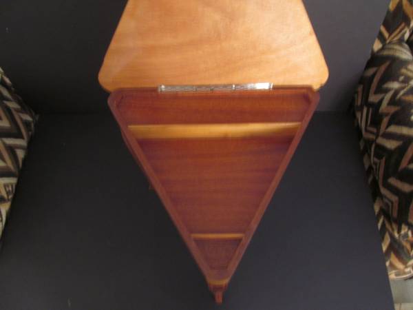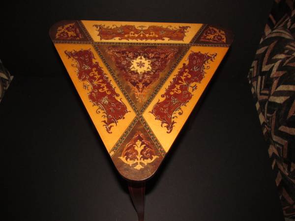 Up for sale is this Vintage Triangle Italian Wood Reuge Inlaid Table Table was hand made in Italy. Music box is Swiss Musical Movement by Reuge Music box song is My Lady Greensleeves This is a...