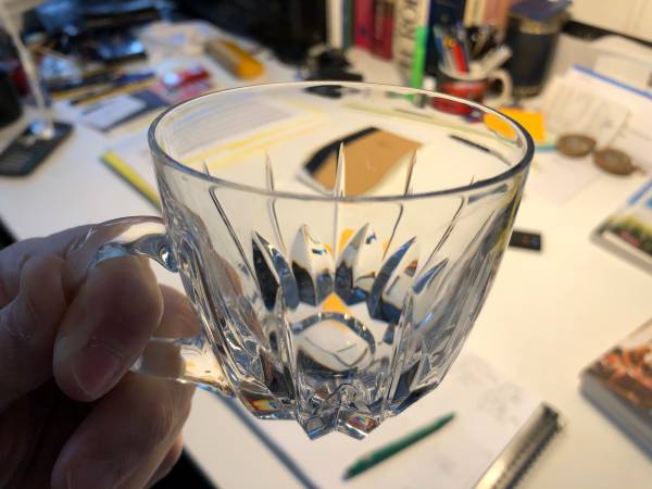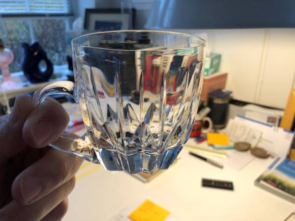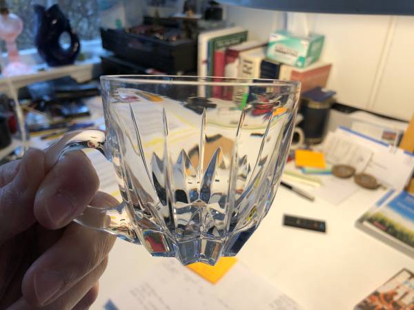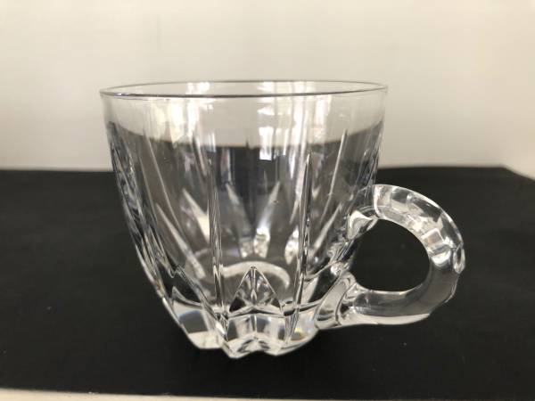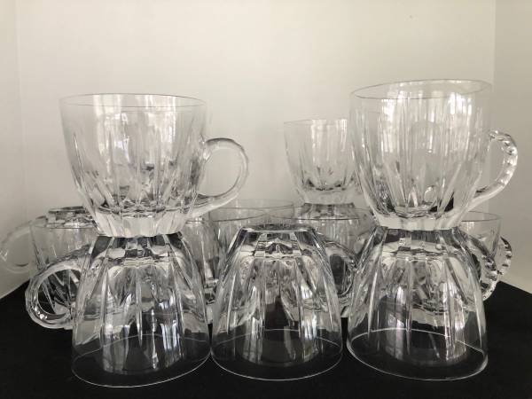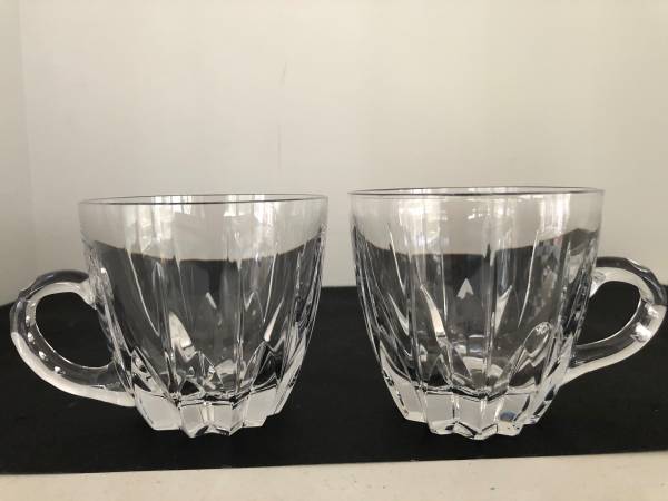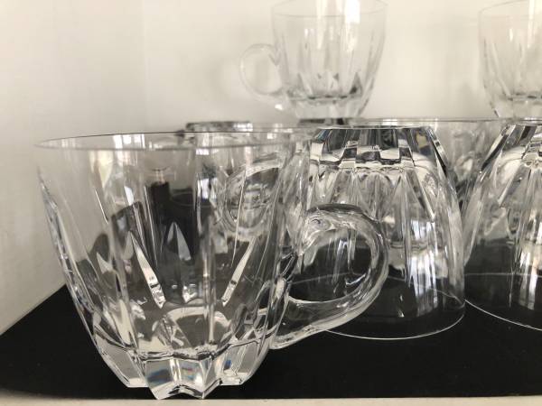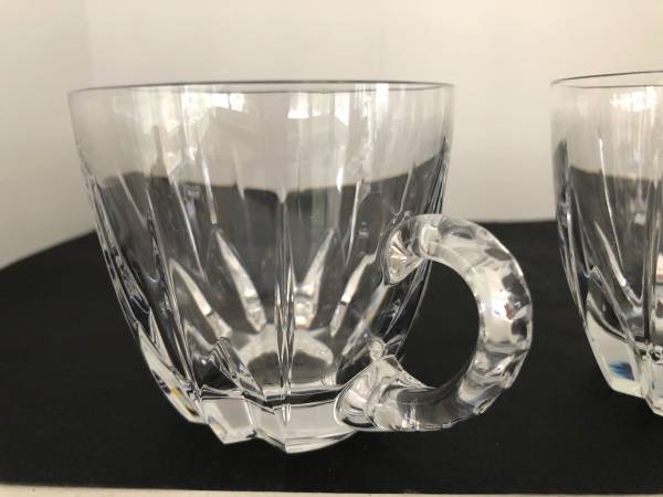 Beautiful cut crystal punch mugs. On has a "n" marking etched on the bottom which leads me to believe these are Nachtmann Crystal. Each glass is in perfect condition and feels great in your hands. Get set for your next party with having these on hand. Really lovely.