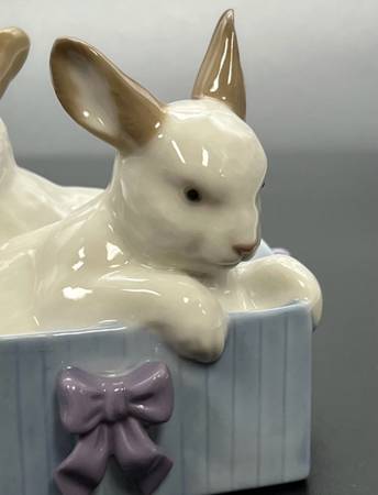 This Nao by Lladro figurine from 1988 features a delightful bunny surprise. Crafted with exquisite detail, this figurine is a wonderful addition to your collection. Ideal for those who love sculptures and figurines, this piece is a great way to add a touch of elegance to any room.