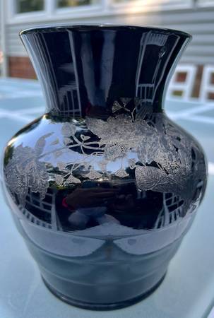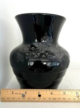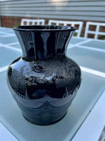 Antique Paden City Etched Black glass vase 6.5” - household items -...