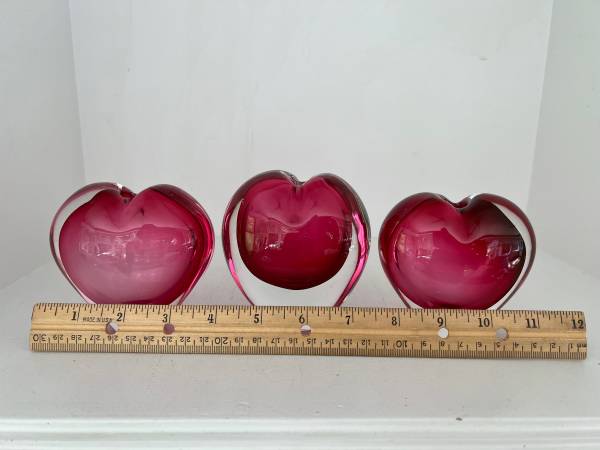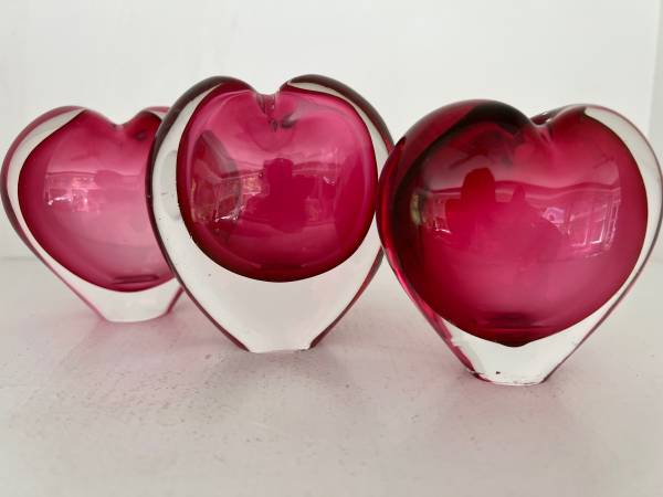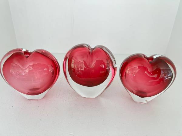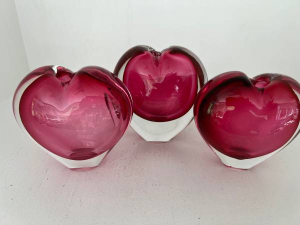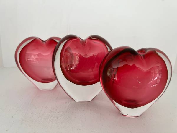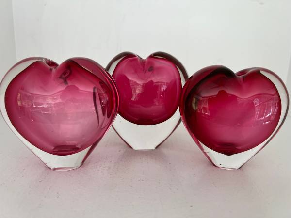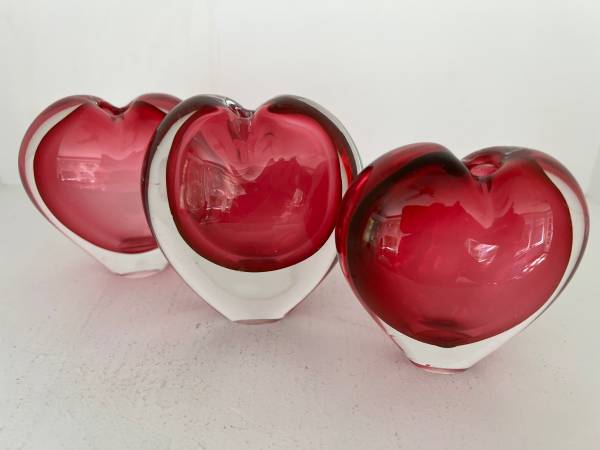 Lovely trio of hearts - fun to display as is or even to add flowers These look so good together that these are only sold as a set Each piece is in very good condition