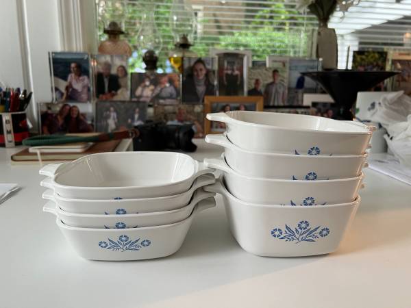 I have two sets of 4 mini casseroles available / take both sets for $60 I also have a set of 4 casseroles 2 3/4 cup size for $35. See last photo