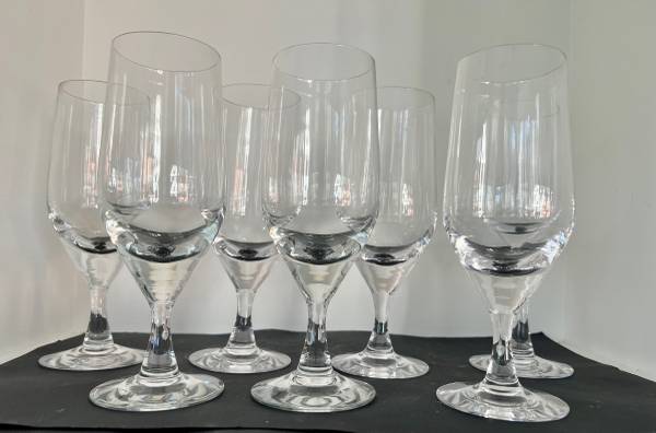 Beautiful set of crystal glasses in perfect condition. These were a match to the Gina Kosta Boda glasses on replacements.com (see last picture) Wonderful for cocktails or soft drinks. A wonderful addition for your bar ware each glass is in perfect condition Hand blown 7.5” tall and 2.5” wide