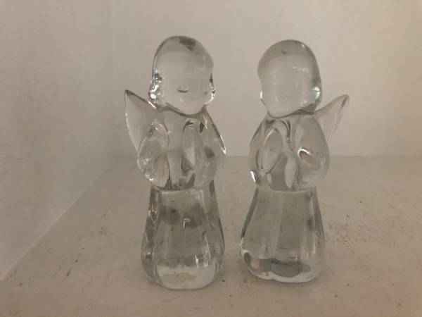 Charming pair of angels. Great for the holidays but I would display these all year. 4" tall. In perfect condition
