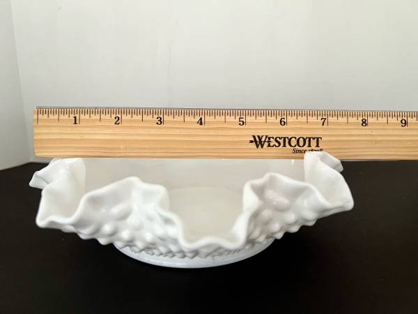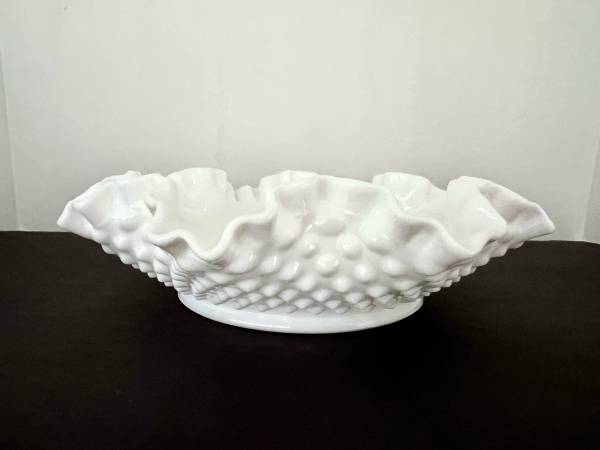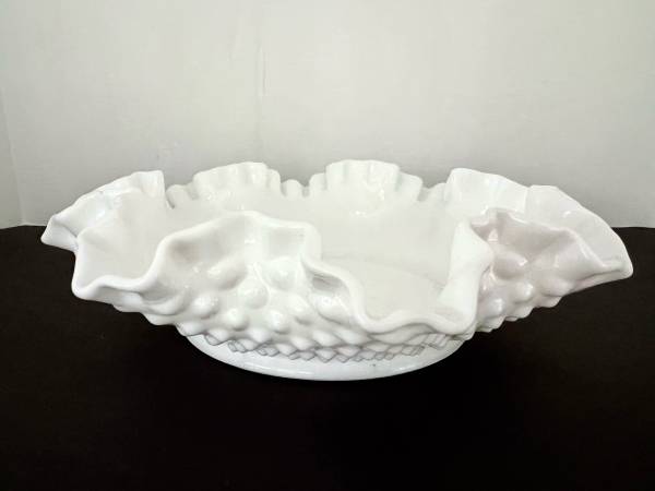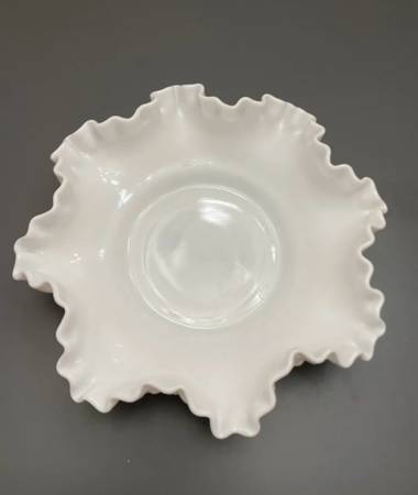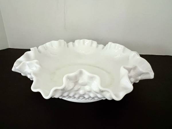 This is a classic Fenton milkglass bowl in excellent condition It’s older unmarked Fenton. This mid century bonbon design was produced by Fenton Art Glass from 1960 through 1981