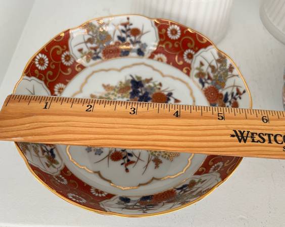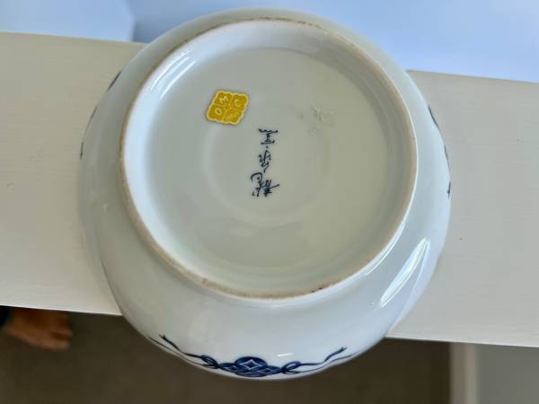 Fine Asian Porcelain Bowl in perfect Condition. Vintage. Stunning Colors. Blue and white on the exterior and reds/orange blue and white on the interior Displays wonderfully. Marked on back
