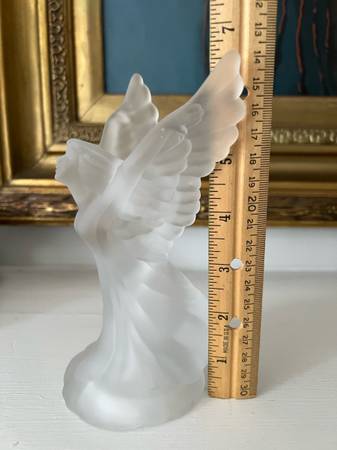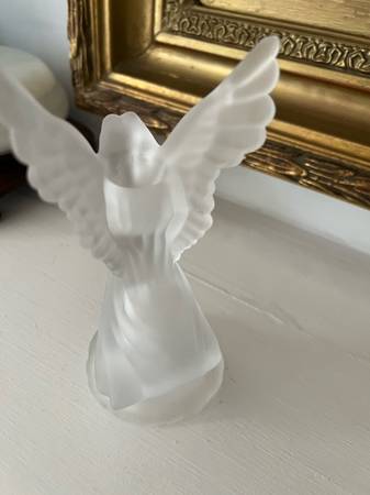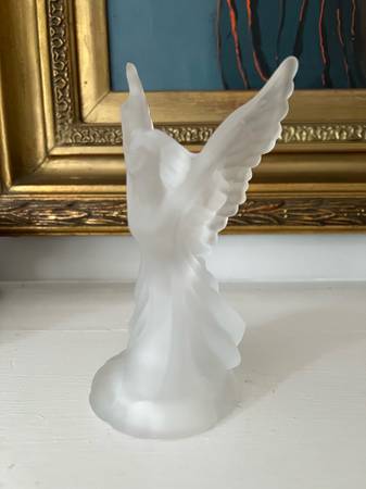 This Satan Finish Frosted Glass Art Deco Style Angel Candle Holder is a stunning piece that blends timeless elegance with a touch of classic charm.