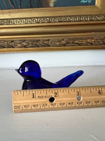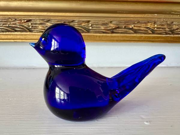This sweetie just brings that smile of happiness to anyone that glances at it. Great cobalt blue colored glass - makers indication embossed on the bottom. In excellent condition.