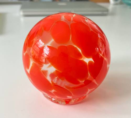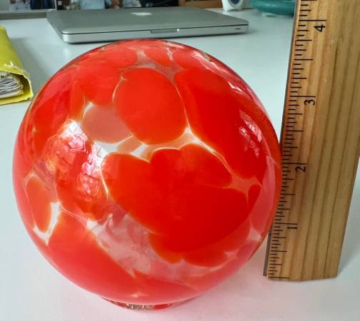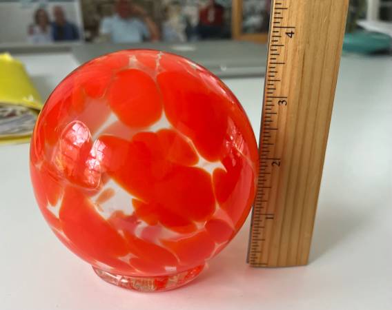 Lovely paperweight - hollow with a footed base Great vibrant color In perfect condition No signature but one of a kind made by a neighbor. Time to pass this along for another to enjoy