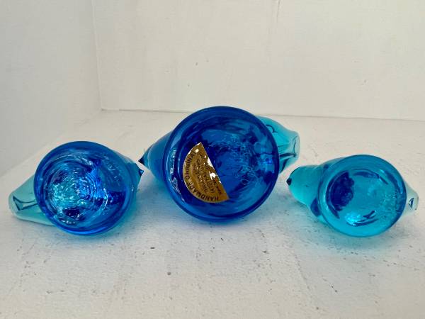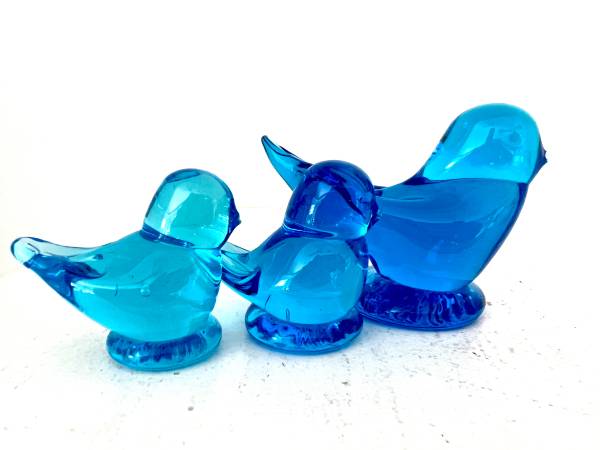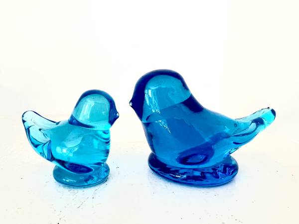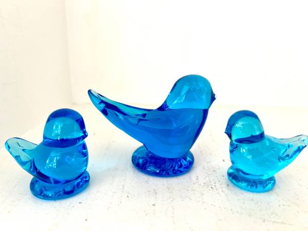 Vintage hand made beautiful glass blue birds 3 large 3” size birds available at $25 each 2 smaller 2” size birds available at $15 each Most of these are signed on the base. It’s always wonderful to...
