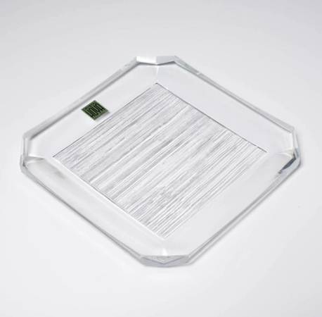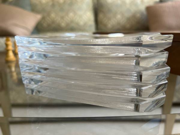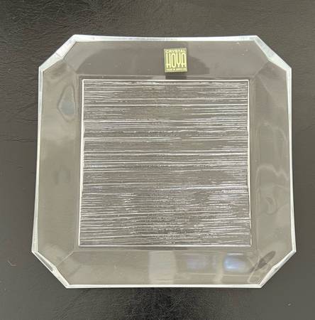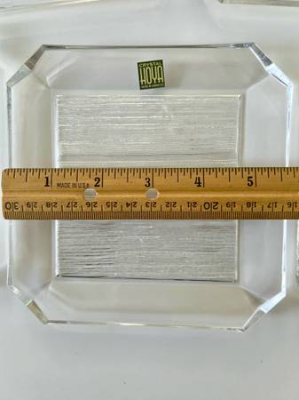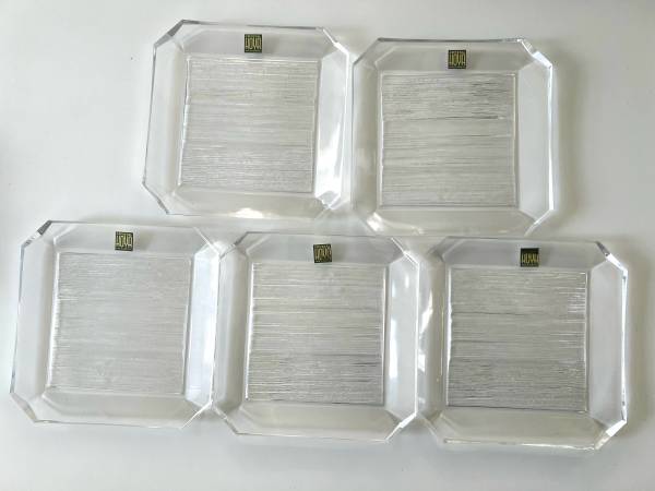 Stunning Set of Five (5) Hoya, Japan crystal glass square dishes with nothced corners and embossed centers. Heavy weight. High quality Japanese crystal in like new condition - appears to be unused