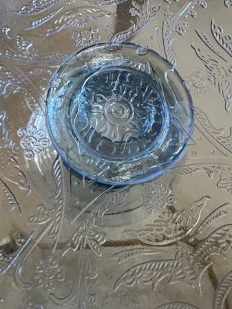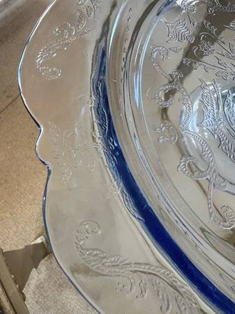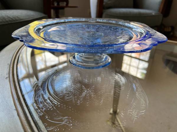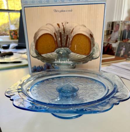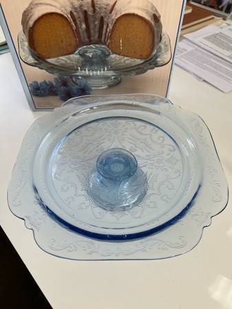 Indiana glass Blue etched pedastol cake stand in box - household...