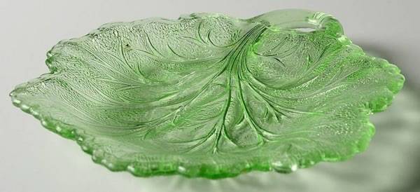 Beautiful uranium glass nappy dish mfd. by the Indiana Glass Co. in the 1930s.